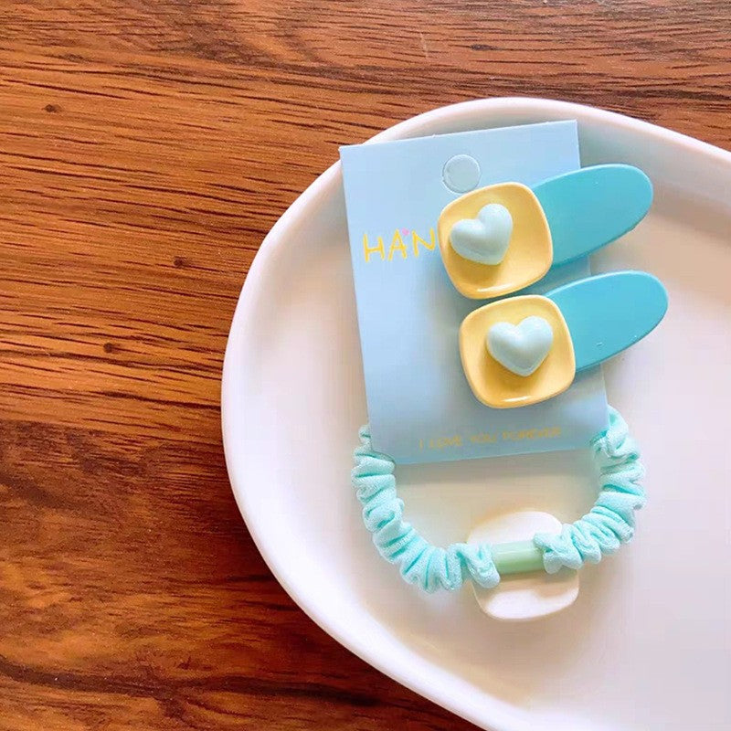 3pcs/set Fashion Heart Design Hair Clips Hair Tie Candy Color Hairpins Sweet Headwear Hair Accessories-CSW1012