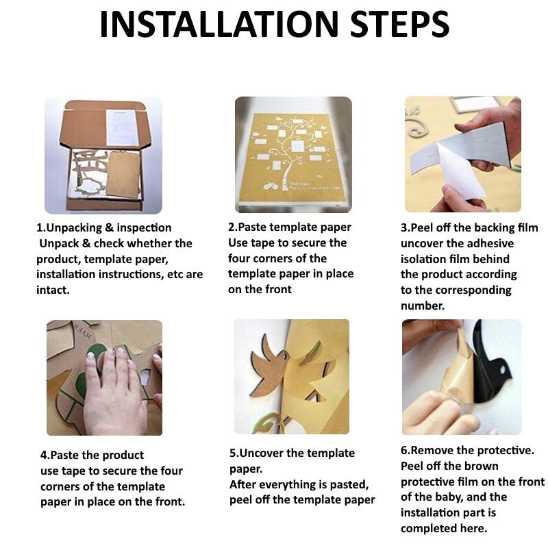 Uncover the adhesive isolation film behind the product according to the corresponding number.