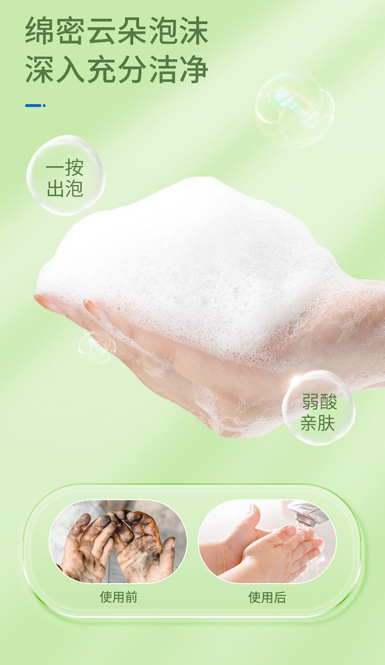Specifically developed for the hand hygiene, the foam with tea fragrance can clean hands and wash easily. you can rub and clean yours hands while keeping the hand shin nourishing and hydrated. The light and fine foam is pleasing and makes handwashing fun every day.