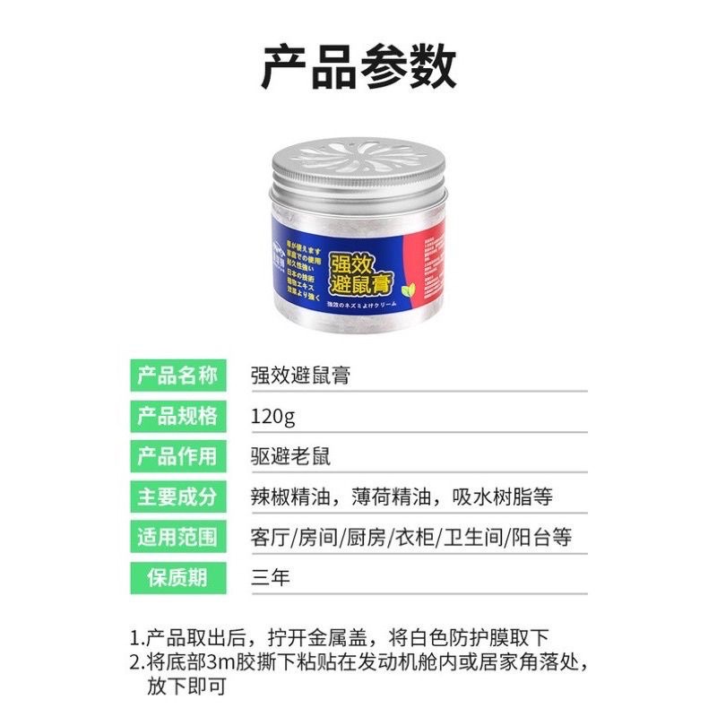 避鼠凝胶膏家用萃取植物精华驱鼠神器防鼠持久不刺鼻120g Anti-mouse gel ointment home-extracted plant extracts, anti-mouse artifact, long-lasting and non-irritating