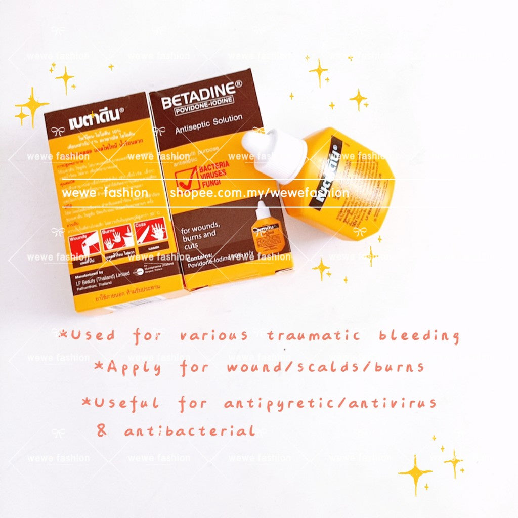 READY STOCK!!!Betadine Povidone-Iodine Antiseptic Solution for Cuts/Wounds/Burns 15cc 泰国正品betadine黄药水杀菌消毒液烧伤/创伤/刀伤