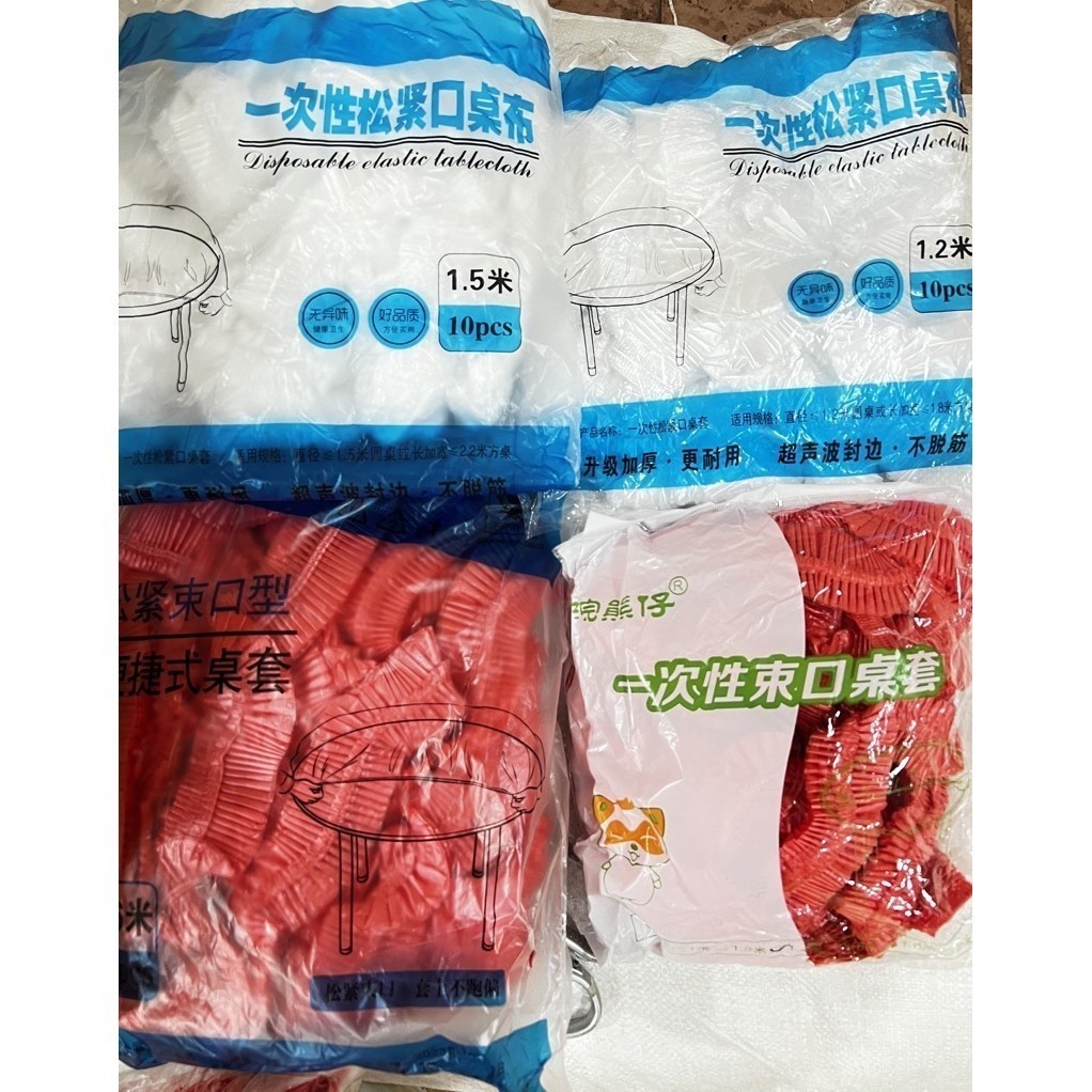 READY STOCK! Disposeable Drawstring PE Table Cloth Plastic Table Round Elastic Table Cover 一次性束口pe桌布塑料桌套