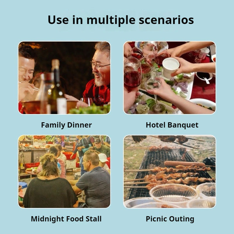 适合野餐,聚餐,餐馆等人多时使用