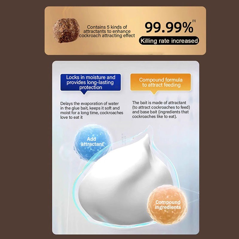 This product mainly kills cockroaches physically, using super attractive bait to attract cockroaches into the cockroach house. They will be stuck to the cockroach house by super strong stickiness until they die. The effect lasts for up to 24 months.