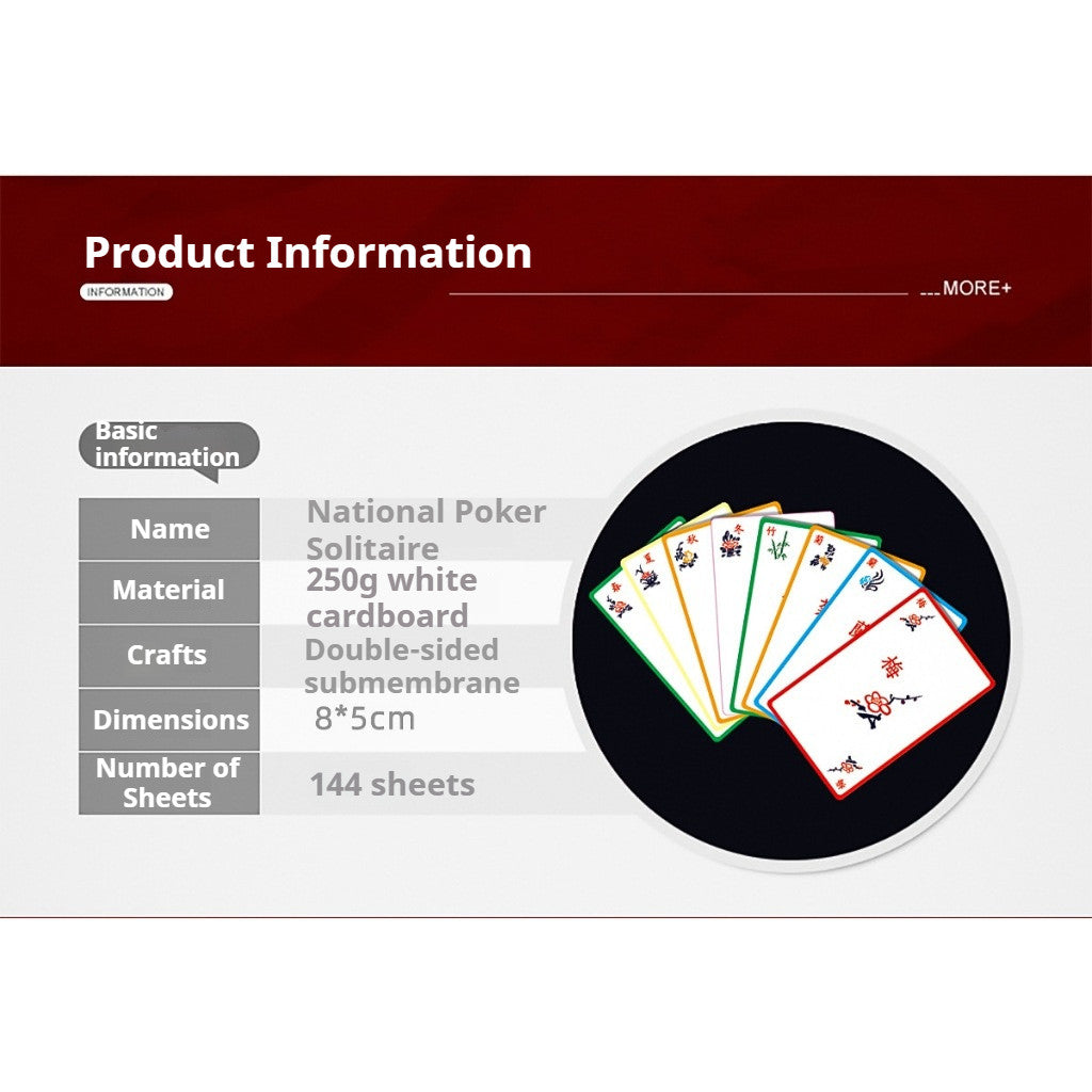 Chinese fashion mahjong cards. Like ordinary mahjong, there are 144 cards + 2 dice in a box.