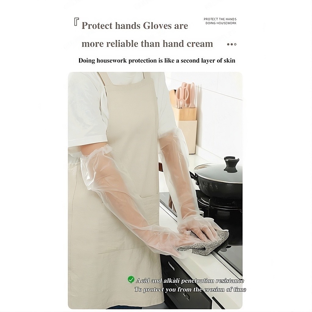 (READYSTOCK) 【New】 60cm Food-Grade Plastic Gloves | Elbow-Length | Waterproof & Durable | 食品级塑料手套 | 长款至手肘