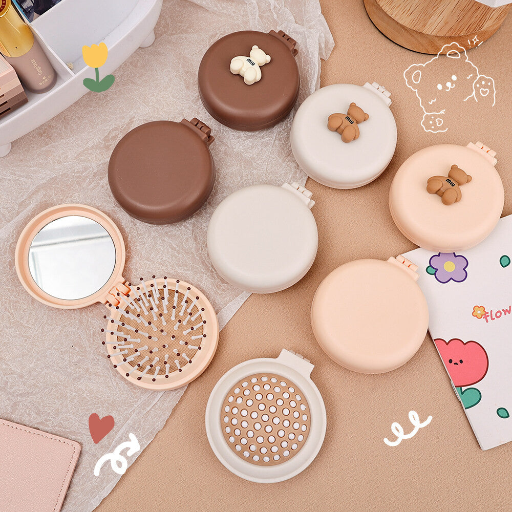 (READYSTOCK) Portable Mini Round Hair Comb with Mirror Hair Salon Hairdressing Small Size Massage 便携迷你圆形梳子带镜子