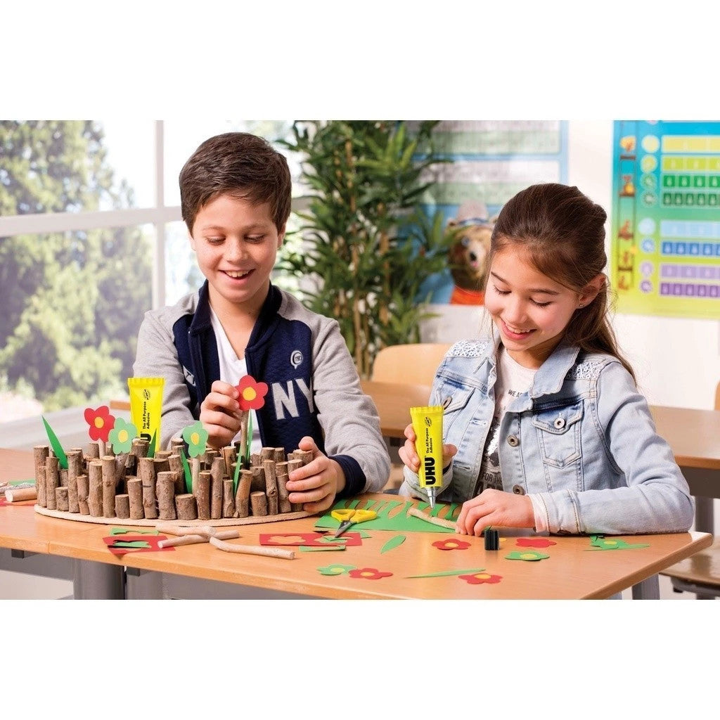 Universal – glues wood, wood based materials, plastics (ABS, hard and soft PVC, Plexiglas®, polystyrene, Resopal®), metal, glass, porcelain, ceramic, leather, rubber, felt, cork, fabrics, cardboard, paper, many plastics and much more.